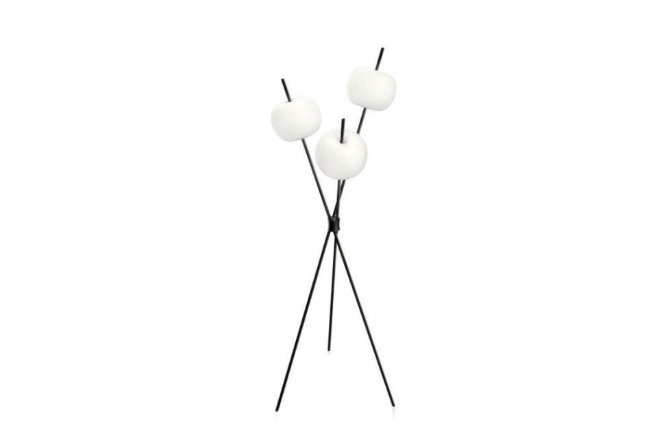 La collection de lampes Kushi est une ligne originale conçue par les designers Alberto Saggia et Valerio Sommella pour l'entreprise italienne d'éclairages Kundalini.Kushi se caractérise par une structure particulière composée de trois éléments transversaux en métal qui rappellent la forme de brochettes, signification du terme "kushi" en japonais. Dans la partie supérieure, trois sphères lumineuses en verre opale soufflé sont placées, semblant être embrochées dans la structure comme des brochettes. Le style de la lampe est simple et essentiel, mais sa configuration particulière attire immédiatement l'attention et la rend adaptée à des environnements au caractère contemporain et non conventionnel. Kushi est disponible en métal peint en noir, en cuivre et en laiton et est réalisée dans une version sur pied (simple ou à trois éléments), suspendue et au plafond.