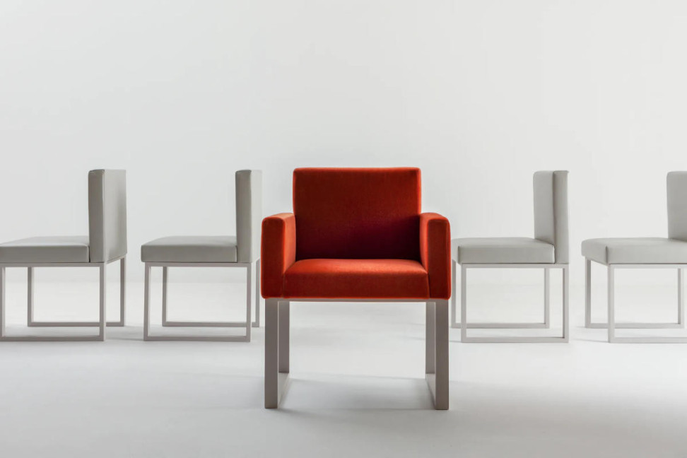 La chaise est réalisée avec une structure en bois et également dans la version petit fauteuil avec accoudoirs. BD 03 B se distingue par son style sobre et rigoureux qui la rend adaptée à des environnements distincts et raffinés. Grâce à l'assise et au dossier rembourrés, la chaise est très confortable et parfaite pour la conversation.