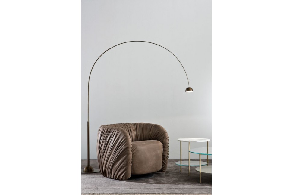 La petit fauteuil girevole Drapè Lounge, signée par le studio Bartoli Design pour la marque Laurameroni, est caractérisée par un design qui rappelle les créations sur mesure de la haute couture. La forme douce et ronde de cette petit fauteuil est en effet enrichie par un drapé qui parcourt élégamment toute la surface. La base est en métal laqué tandis que le revêtement de la petit fauteuil Drapè peut être en velours ou en cuir précieux.Laurameroni