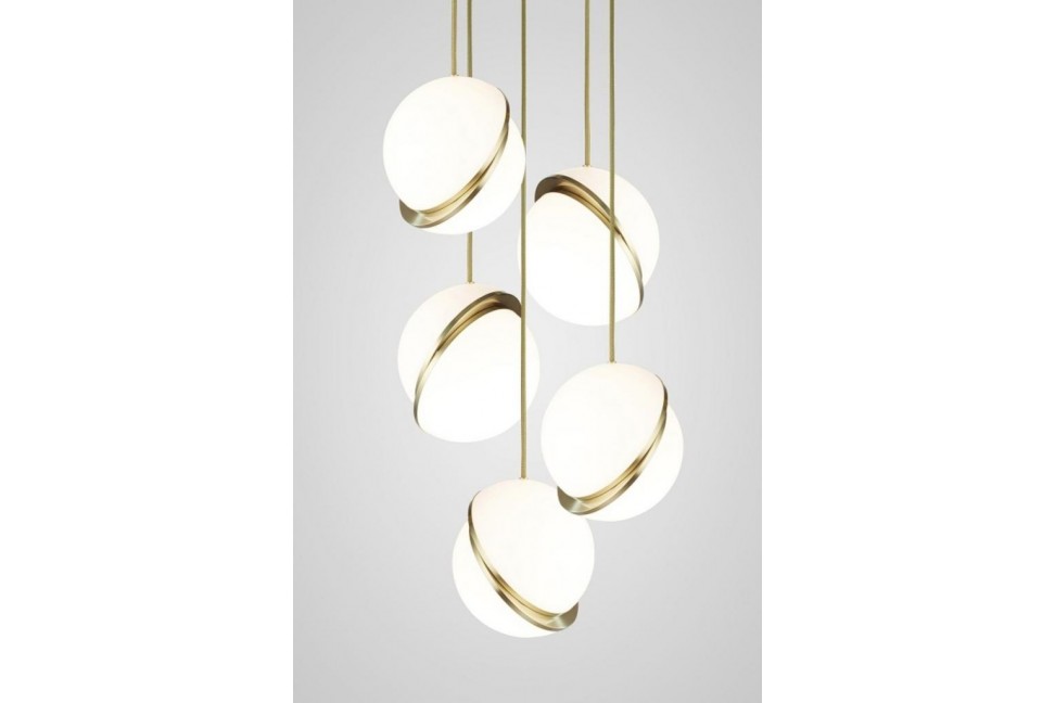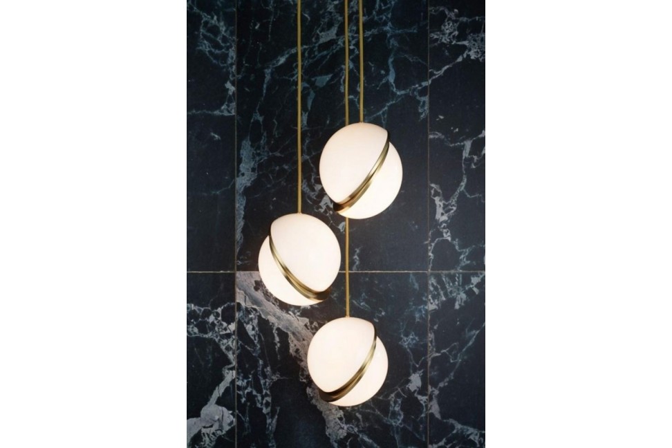 Conçue par le designer britannique Lee Broom, Crescent se compose d'un diffuseur en matériau acrylique opaque obtenu par la combinaison de deux hémisphères unis de manière asymétrique, comme si la partie inférieure glissait vers le bas. L'espace entre les deux hémisphères laisse entrevoir la finition élégante en laiton brossé, qui définit le périmètre de la lampe. Disponible en plusieurs tailles et compositions, la lampe Crescent est également réalisée dans une version de table.