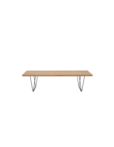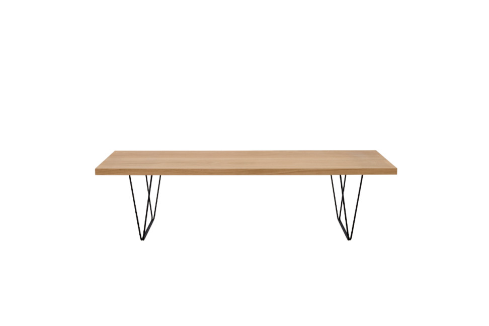 La perfection esthétique du table basse CM 191 conçu par Pierre Paulin en fait une icône intemporelle de la collection de Ligne Roset. Les pieds, en acier laqué noir, sont des doubles arcs en forme de V qui soutiennent un plateau rectangulaire en bois de noyer, cerisier ou chêne.