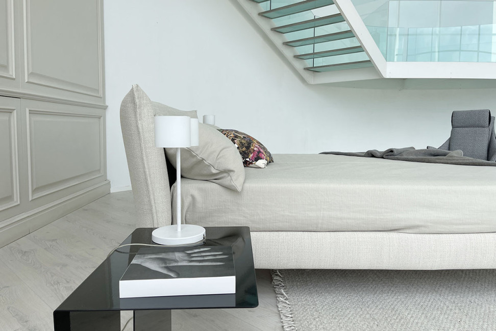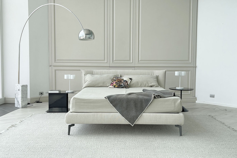 La collection de lits Alf DaFrè s'élargit avec l'introduction de Morrison, lit rembourré conçu par Enrico Cesana au design élégant. Ce lit de design se distingue par ses parties latérales qui s'étendent légèrement, créant une atmosphère de raffinement et d'harmonie. La combinaison de formes sinueuses et de matériaux de haute qualité confère au lit un aspect sophistiqué et accueillant, invitant au repos et à la détente. Le large choix de dimensions disponibles, y compris les options avec rangement, permet d'adapter le lit aux dimensions de l'espace et aux besoins de stockage.