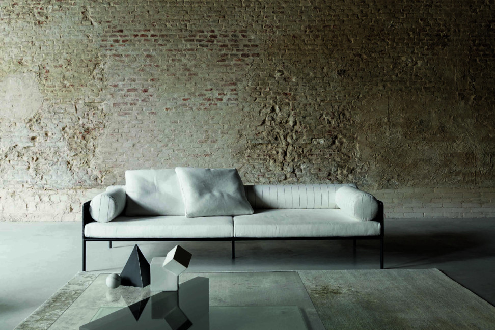 Le projet du canapé Agra naît d'une idée du jeune designer espagnol David Lopez Quincoces, qui collabore depuis plus de dix ans avec Living Divani en signant des projets de grand succès. Le canapé Agra se caractérise par une symétrie soignée obtenue en utilisant des lignes nettes et essentielles qui en font un objet d'une beauté intemporelle. L'assise est enrichie de raffinés coussins à rouleau qui constituent le dossier et les accoudoirs, tandis que la structure est disponible en tube d'acier peint en gris pour la version intérieure, ou en corde cirée tressée pour la version extérieure.