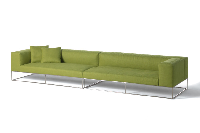 Le siège du canapé Ile Club de Living Divani est réduit à une épaisseur minimale, tandis que la robuste structure soutient avec légèreté et sans effort la partie supérieure, qui est volumineuse, accueillante et qui a plus d'impact visuel. Il a une structure de accoudoirs et dossier en bois de peuplier et épicéa contreplaqué et un rembourrage en polyuréthane visco-sof “Xtra-pur” recouvert d'un matelas en plumes d'oie lavées et stérilisées. La base est en tube carré en acier inoxydable AISI 304 satiné mat. Le coussin de siège est en polyuréthane visco-sof “Xtra-pur”, recouvert d'un matelas en plumes d'oie lavées et stérilisées. Le revêtement est disponible en cuir ou en tissu et les deux sont entièrement déhoussables. La profondeur d'assise est de 66 cm. Sur demande, il est possible d'avoir le matelassage.