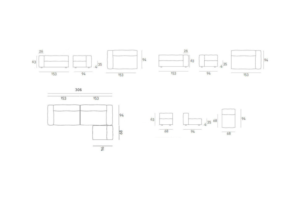 Dimensions : cm. 306x162x63h
