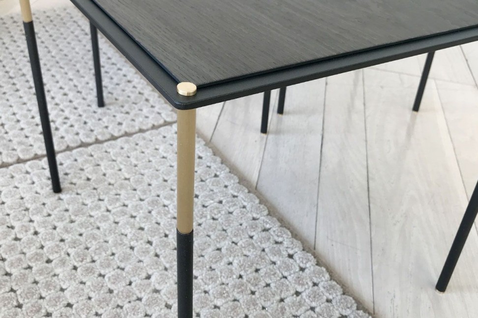 Disponibles en différentes tailles et formes, les tables basses Era sont composées d'un plateau en essence ou laqués brillants dans les différentes colorations de la collection, tandis que la base en métal présente une double finition : laquée couleur canon de fusil et laiton satiné mat.
