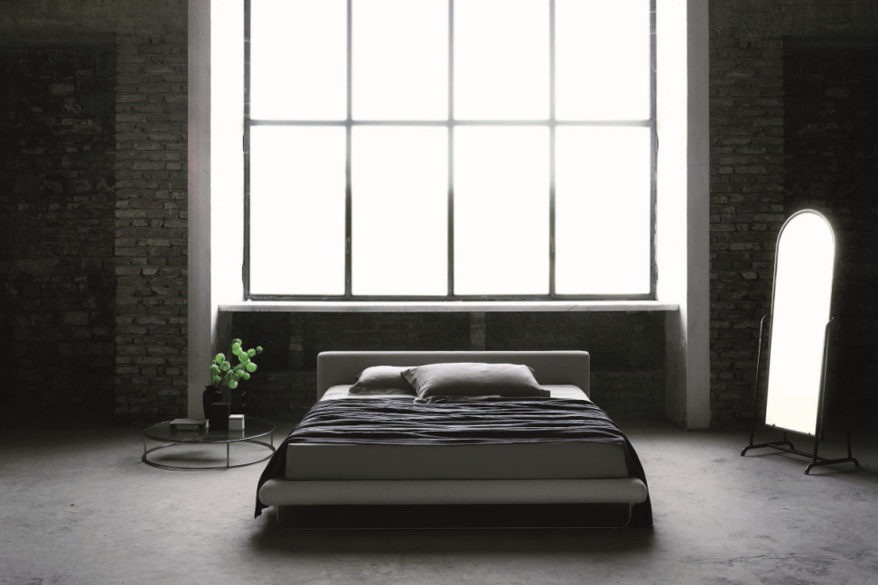 Le lit Avalon de Living Divani est caractérisé par un design qui se développe sur de larges lignes rectangulaires et des composants rembourrés. Il peut être double ou simple.