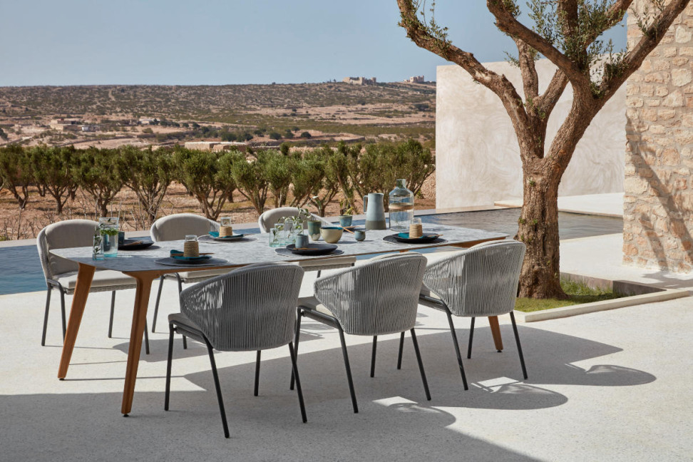 La chaise d'extérieur Radoc, conçue par Stephane De Winter pour la marque belge Manutti, se distingue par son design léger et néo-moderne.