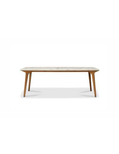 La table extérieure Torsa de Manutti, conçue par le designer Stephane De Winter, incarne l'essence du raffinement avec ses lignes fines et légères. Sa base en bois sculpté s'associe parfaitement à un plateau en faux marbre ou en céramique monochromatique, le rendant idéal pour tout moment en extérieur, que ce soit pour un café relaxant, un dîner festif ou un apéritif animé.