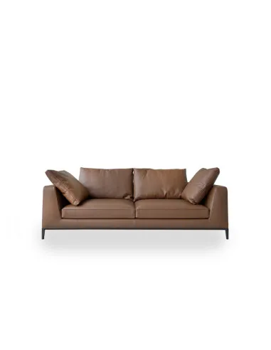 Le canapé Lucrezia Soft en offre expo dans notre showroom présente une base en nickel mat couleur marron et un revêtement en cuir couleur noyer. De plus, il comprend 2 coussins de dos de cm.60x60 et 2 coussins de dos de cm.90x60.
