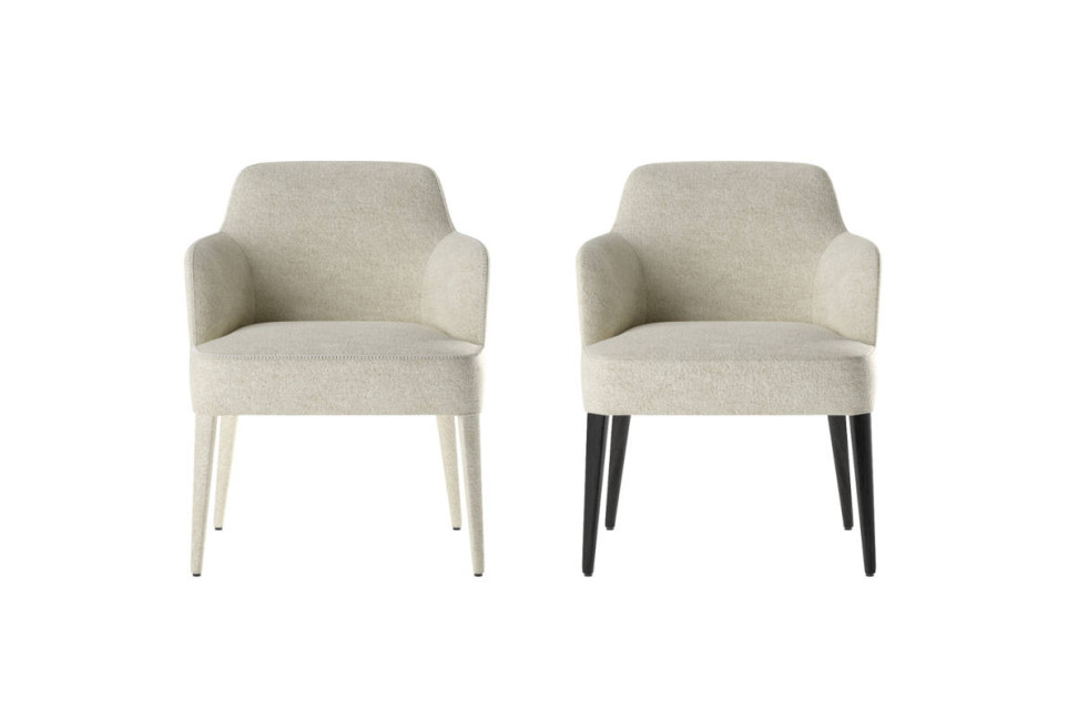Un élément distinctif de toute la collection Febo est le choix des matériaux et des finitions. La chaise Febo est disponible en version monomatière, avec des tissus ou des cuirs de qualité, qui mettent en valeur le soin artisanal dans le travail et les coutures à vif à point cheval, contribuant à une finition de haute qualité et de raffinement. En alternative, il est possible d'opter pour les chaises avec des pieds en bois, qui ajoutent une touche naturelle et chaleureuse au design global.