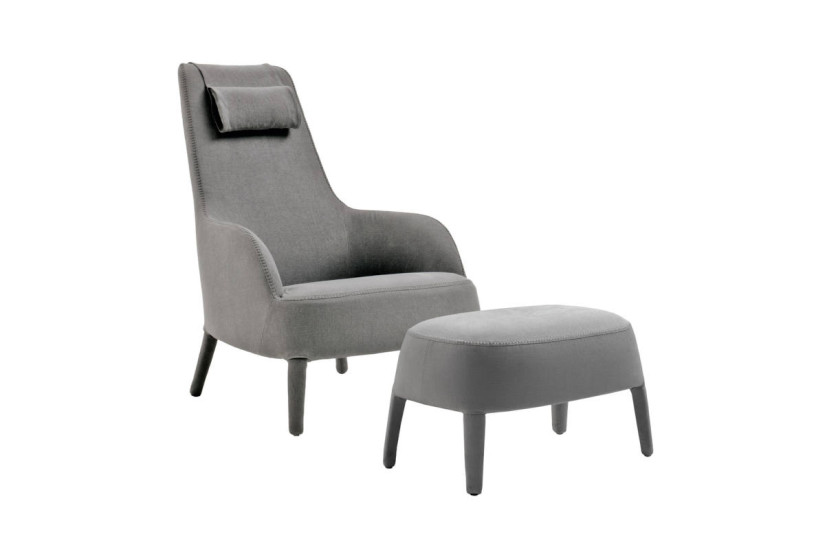 Le fauteuil Febo 2013 de l'entreprise B&B Italia, collection Maxalto, est une bergère avec accoudoirs, repose-tête et pouf qui accueille les personnes souhaitant un moment de véritable détente.