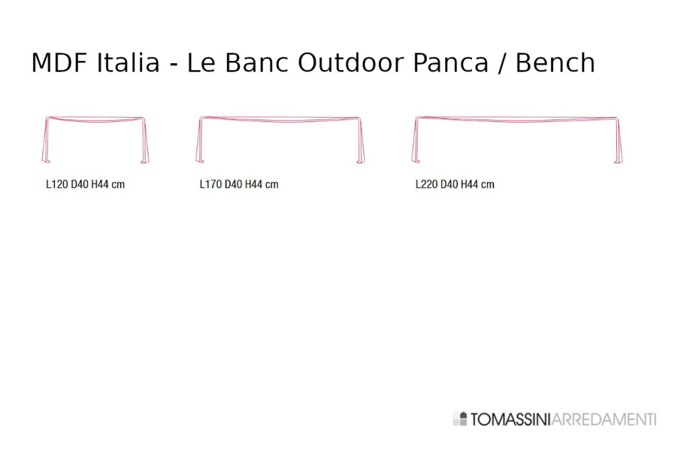 Le banc extérieur Le Banc est disponible dans les dimensions suivantes :