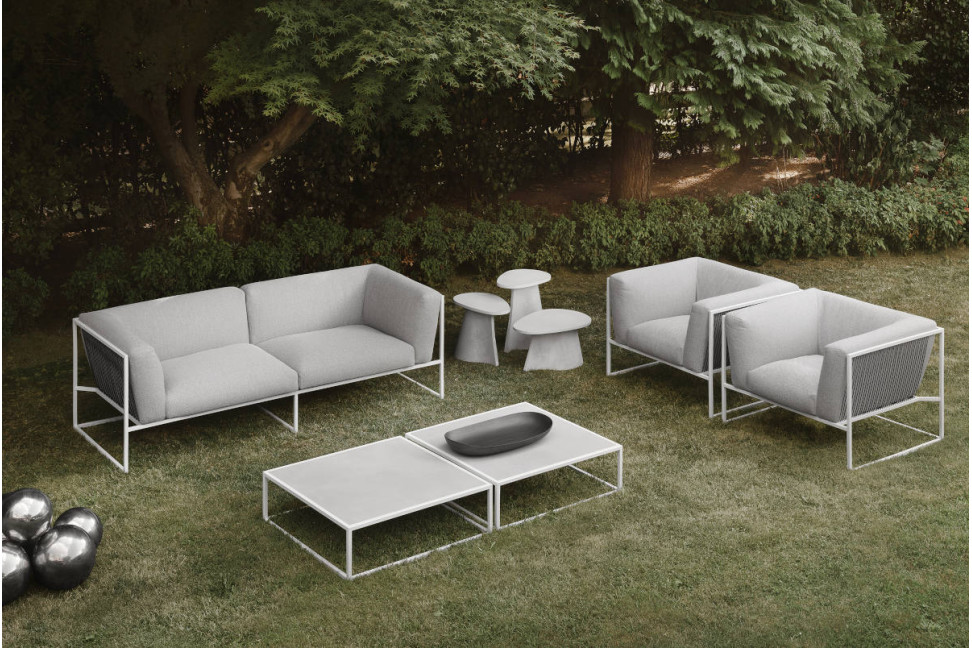 Le canapé d'extérieur Arpa, fruit de la collaboration entre le designer renommé Ramón Esteve et la marque acclamée MDF Italia, est une œuvre de design inspirée de la harpe qui allie élégance, confort et fonctionnalité. Contrairement à la complexité de la fabrication d'une harpe, le design de la collection Arpa repose sur un exercice rigoureux de synthèse, cherchant à résoudre chaque pièce avec le moins d'éléments possible. La stabilité de la structure orthogonale extérieure se combine avec le confort et la douceur des coussins intérieurs. Les cordes raffinées ajoutent élégance et délicatesse à chaque élément de la famille, créant une sensation de légèreté, comme si l'ensemble du revêtement flottait suspendu à sa propre structure. Ce canapé a été conçu pour être intemporel et aspire à devenir une icône non seulement pour son esthétique, mais aussi pour sa fonctionnalité et son confort. Arpa offre une expérience d'assise agréable et relaxante, permettant aux gens de profiter pleinement du temps passé à l'extérieur.