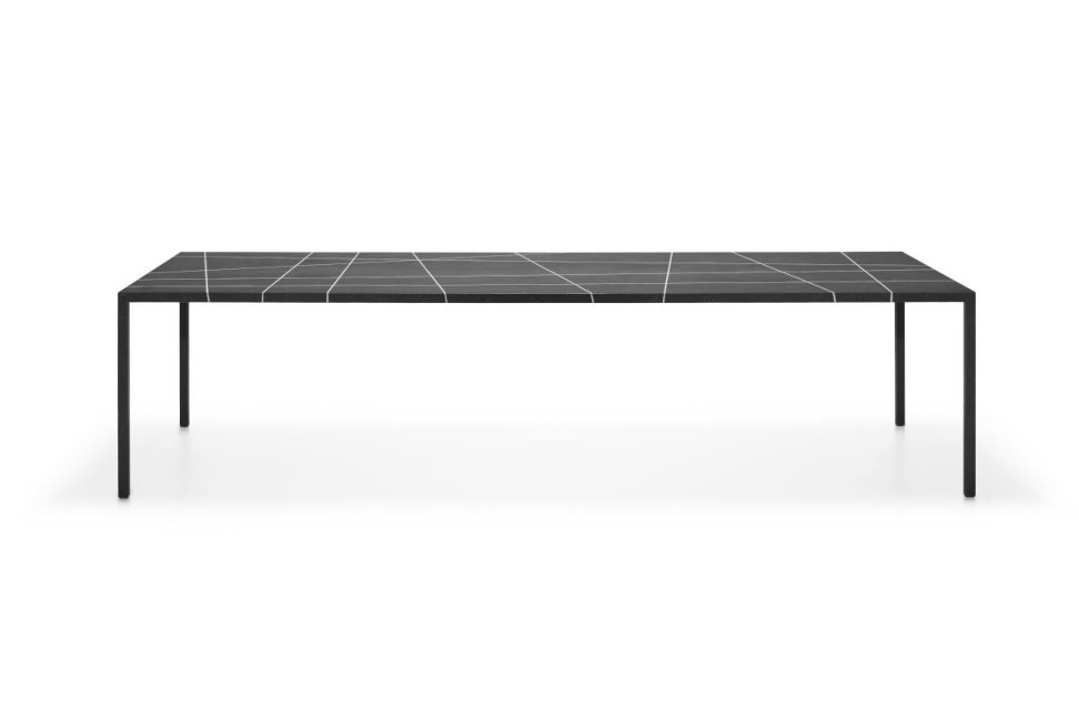 Piergiorgio et Michele Cazzaniga, à l'occasion du Salone del Mobile de Milano, ont conçu pour l'entreprise MDF Italia la nouvelle table Tense Material Intarsia.