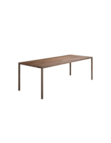 Riedizione du célèbre table Tense, Tense Material combine un design linéaire à l'élégance de l'utilisation d'un matériau noble comme le bois. Malgré sa simplicité apparente, la table Tense Material est une table à fort impact esthétique, capable de susciter de fortes émotions tactiles, grâce également à la finition brillante transparente qui accentue sa linéarité. Sa légèreté cache une structure interne en profilé d'aluminium et un remplissage en polystyrène qui en accentuent grandement la résistance.
