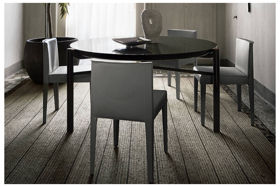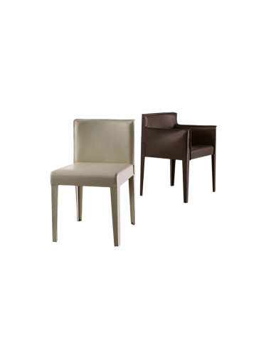 La chaise Tattoo d'Andrea Parisio pour Meridiani est disponible avec ou sans accoudoirs, avec une structure métallique entièrement recouverte d'un cuir précieux de qualité exceptionnelle, embellie par des coutures visibles et des coutures ton sur ton. Le confort est garanti par le fin rembourrage de la surface d'assise et du soutien pour le dos.