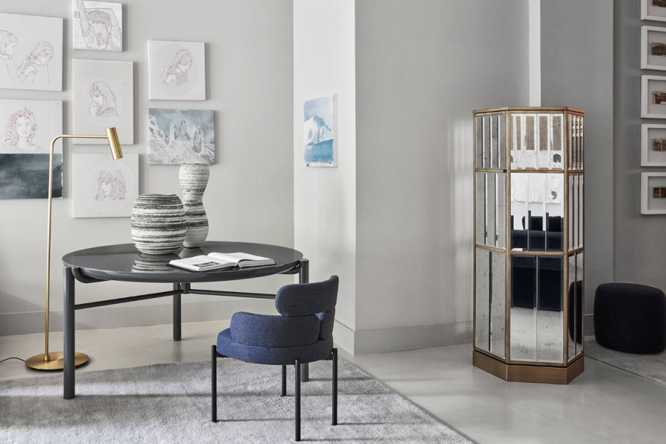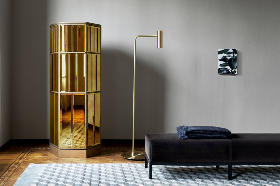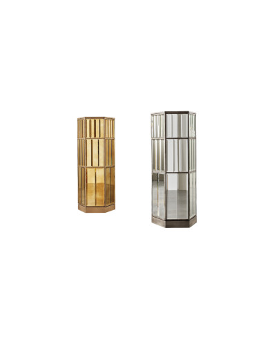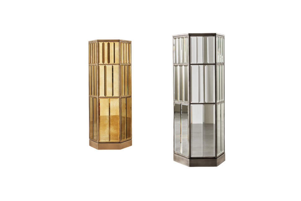 L'artiste Andrea Parisio, signature historique du design made in Italy, réalise pour Meridiani le conteneur Ludwig dans lequel il fusionne géométrie et esthétique en prêtant une attention particulière aux détails et au choix des matériaux. Le conteneur mesure 170 cm de hauteur, a une structure à base hexagonale en bois et les finitions extérieures sont habilement conçues pour créer des contrastes vifs entre zones mates et réfléchissantes. Meridiani réalise également une seconde version avec une finition extérieure entièrement en miroir bronzé biseauté appelée “Diamond”.