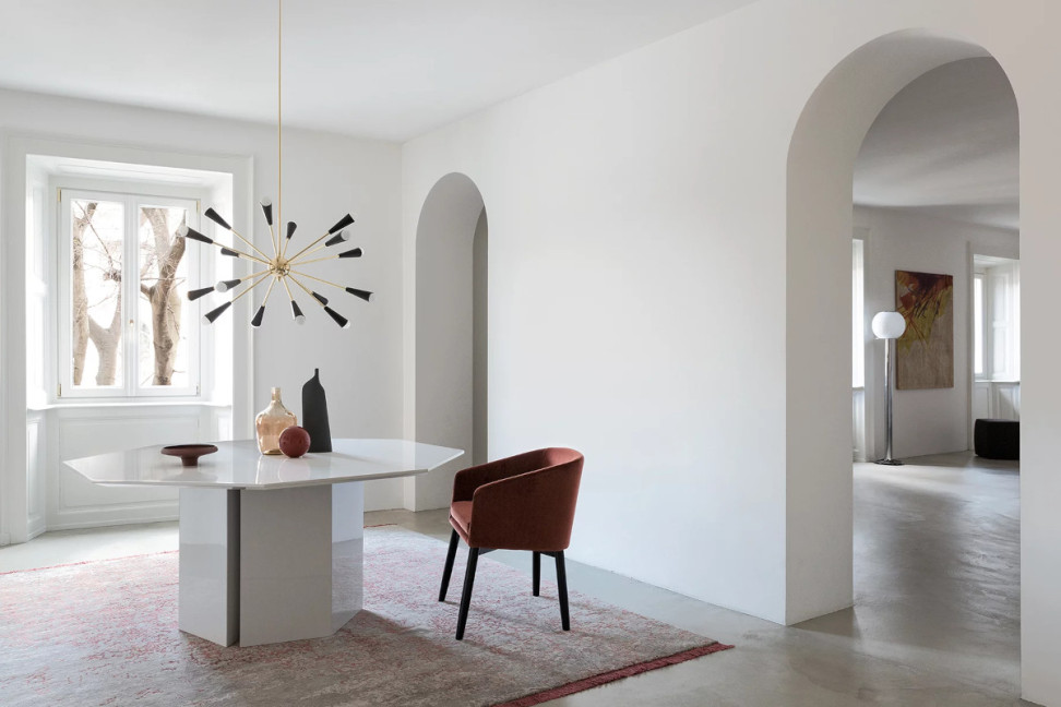 L'association de la table Plinto avec chaises design de la collection Meridiani est un mariage parfait qui accentue encore plus l'élégance et la polyvalence des deux éléments. La propreté formelle et l'équilibre du design de la table Plinto s'harmonisent avec les lignes innovantes et raffinées des chaises design, créant un environnement sophistiqué et attrayant.