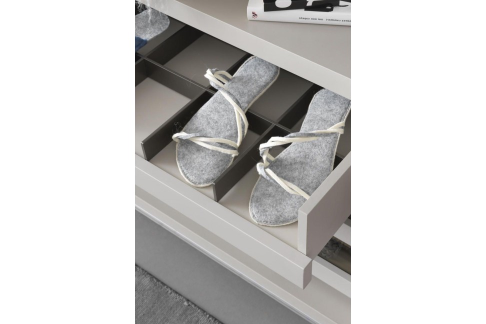 Disponible en divers modèles de dimensions différentes, l'armoire Lexington est équipée de portes avec un système de glissement coplanaire amorti et redressant.