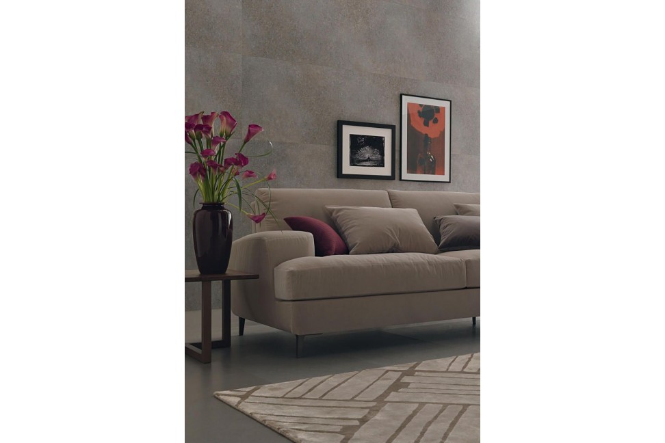 Contraste par un design élégant qui fait un clin d'œil au goût contemporain, le canapé British de MisuraEmme est un élément de mobilier idéal pour apporter une touche raffinée aux salons modernes et informels.Conçu par le designer italien Ferruccio Laviani, ce canapé se distingue par la rondeur de ses formes et par sa silhouette harmonieuse, qui lui confèrent un charme intemporel. British est disponible en trois tailles différentes et est recouvert de tissu ou de cuir, tandis que la base est constituée de quatre pieds en laiton peint couleur canon de fusil.
