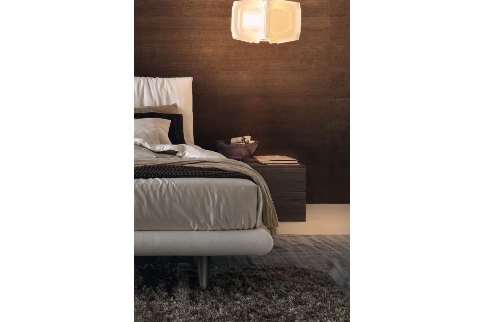 Trait distinctif de cet élément de décoration attrayant est la tête de lit, divisée en deux panneaux dotés d'un mécanisme d'inclinaison, qui permet de régler sa position pour obtenir un maximum de confort. De plus, Beatrice est réalisée à la fois dans la version avec pieds et avec conteneur, permettant d'optimiser les espaces. Le revêtement est disponible dans les tissus et les cuirs de la collection MisuraEmme.