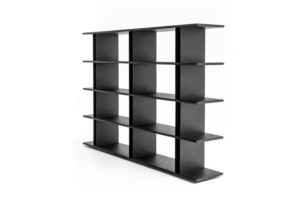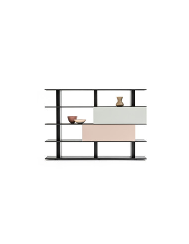 Composée en effet de quelques éléments qui se répètent en superposition verticale, la bibliothèque Frame-shift de Moroso est polyvalente et peut devenir à la fois un meuble bas TV, si par exemple on choisit la solution à deux étagères, jusqu'à un maximum de cinq avec également l'utilisation de panneaux de fermeture coulissants extrêmement fonctionnels. Idéale en mur ou même comme séparateur au centre de la pièce, la bibliothèque Frame-shift a des étagères en bois, des profils en aluminium et des panneaux de fermeture en deux variantes de laquage brillant, blanc et noir, ou en deux couleurs de laquage mat, Shell et Agate, et en verre stop-sol silver.