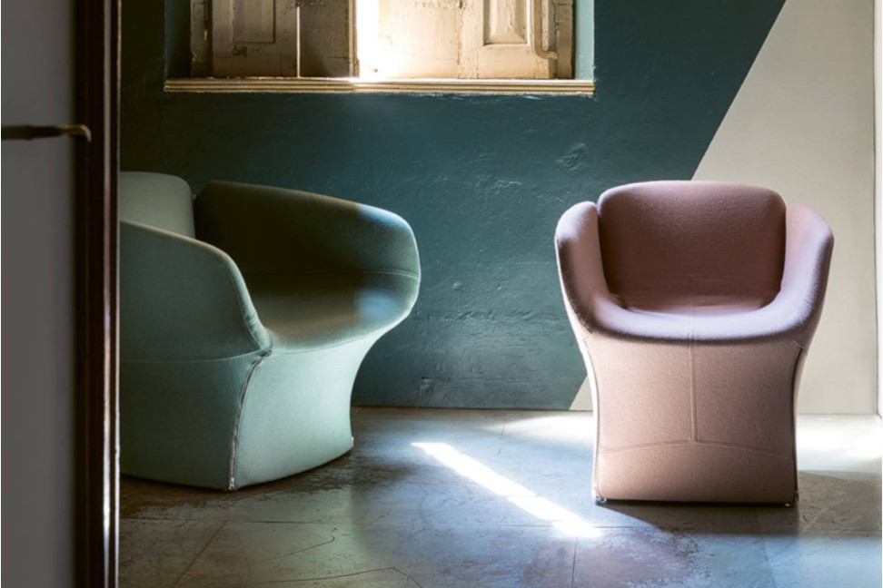 La petit fauteuil Bloomy di Moroso, rappelant une fleur fraîchement éclose, se caractérise par des contours définis et un dossier aux lignes arrondies et douces, symbole du confort qui la distingue.
