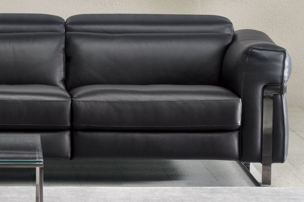 Le revêtement en cuir épais est enrichi de coutures piquées réalisées à la main, tandis que la structure extérieure en métal dessine le périmètre du canapé en mettant en valeur son design. Fidelio est également doté d'un mécanisme qui permet de incliner l'appui-tête et d'allonger l'assise, permettant de l'adapter en fonction de ses besoins de confort.