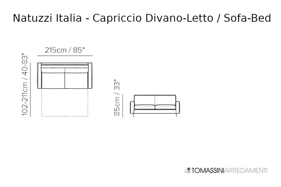 Le Canapé-Lit Capriccio est disponible dans la mesure suivante : cm. 215x102-211x85h.