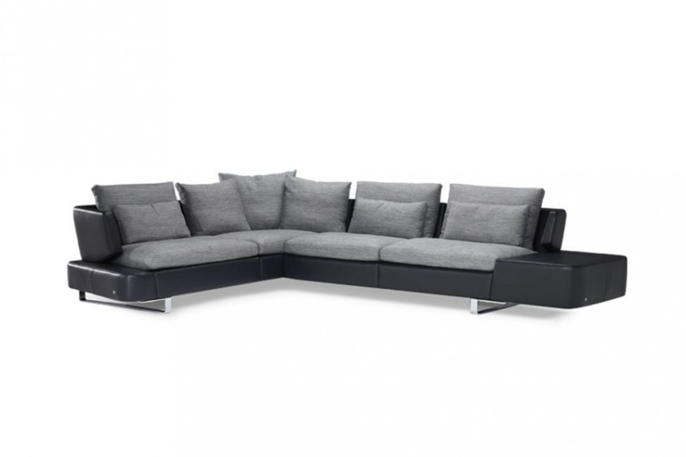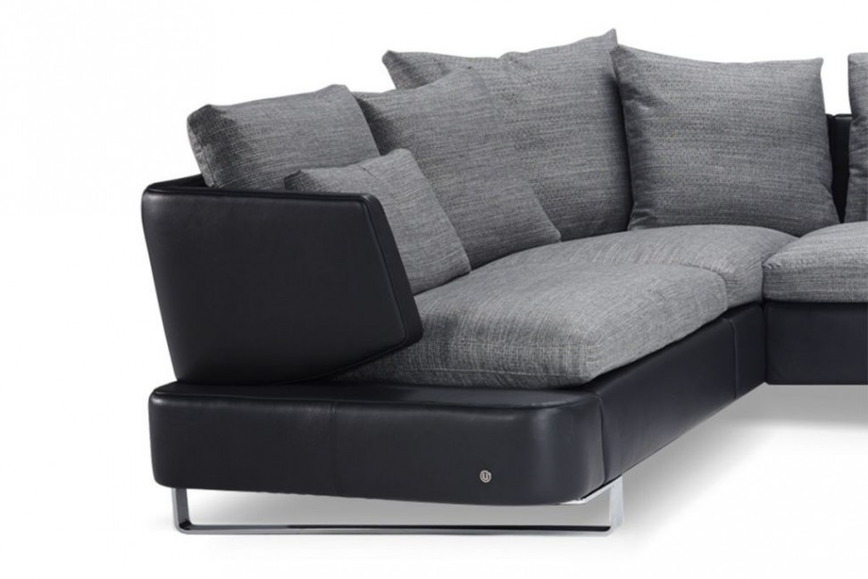 Opus est soutenu par une base géométrique en métal, qui élance l'assise revêtue dans la vaste gamme de tissus et cuirs de la collection. Au choix, il est possible de combiner deux revêtements différents, obtenant un jeu original de contrastes entre couleurs et matériaux.