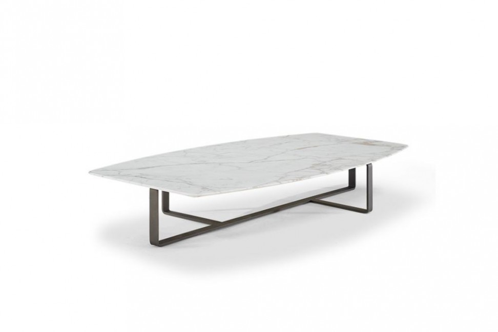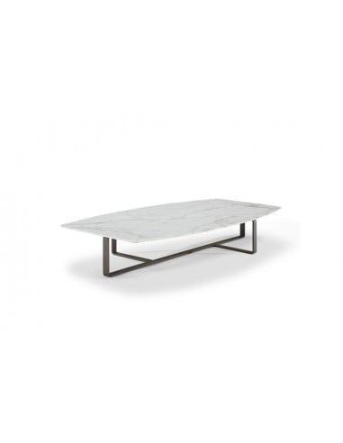 Les tables basses Tempo, réalisées en divers modèles de différentes formes et dimensions, sont constituées d'une structure en métal peint de couleur anthracite et d'un plateau en bois, marbre ou acier inoxydable dans la finition spéciale argentée.