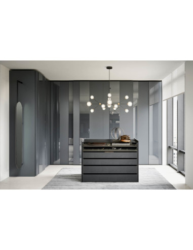Caractéristiques Techniques: Les caractéristiques techniques de l’armoire Plissé de Novamobili sont conçues pour combiner esthétique et fonctionnalité, garantissant un produit polyvalent et de haute qualité. All'intérieur, il est possible de l'aménager avec des étagères réglables, des tiroirs intégrés ou des accessoires optionnels tels que porte-cravates, porte-pantalons extractibles ou éclairage LED interne pour une touche de classe et de praticité. Les inserts des portes sont disponibles en finition miroir ou en finitions en essence et laquées. Les poignées sont intégrées ou en contraste.