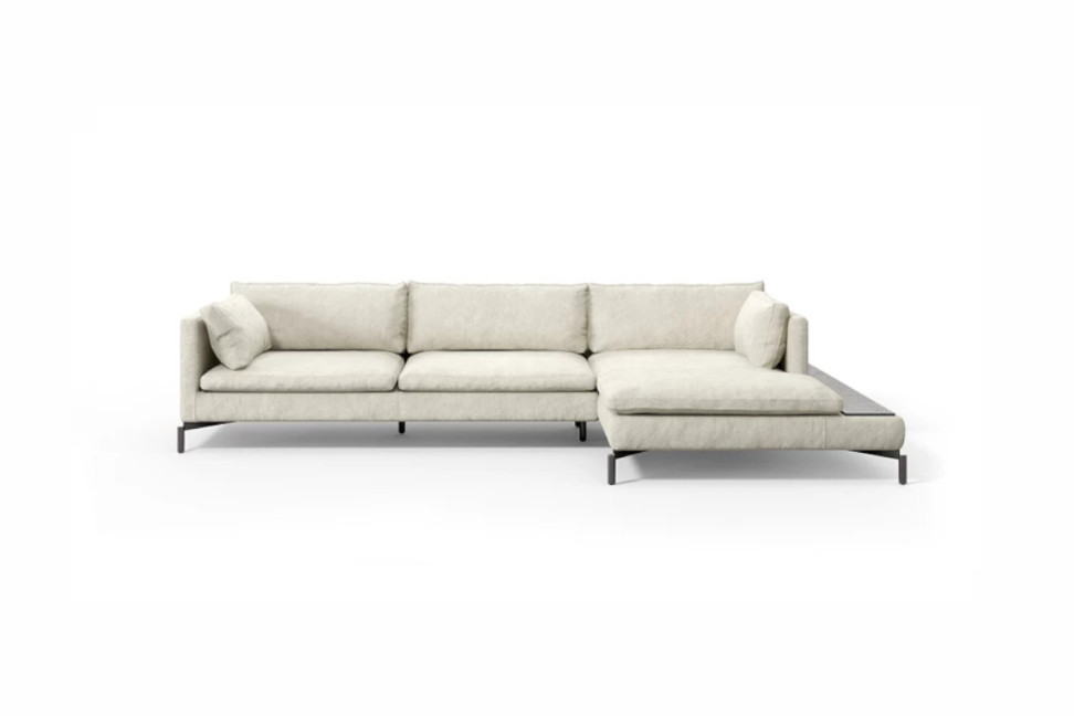 Caractéristiques techniques : Certains modules du canapé sont équipés d'un plateau latéral en finition plaquée ou Noyer canaletto, pour rendre le canapé encore plus pratique lors des moments de convivialité.