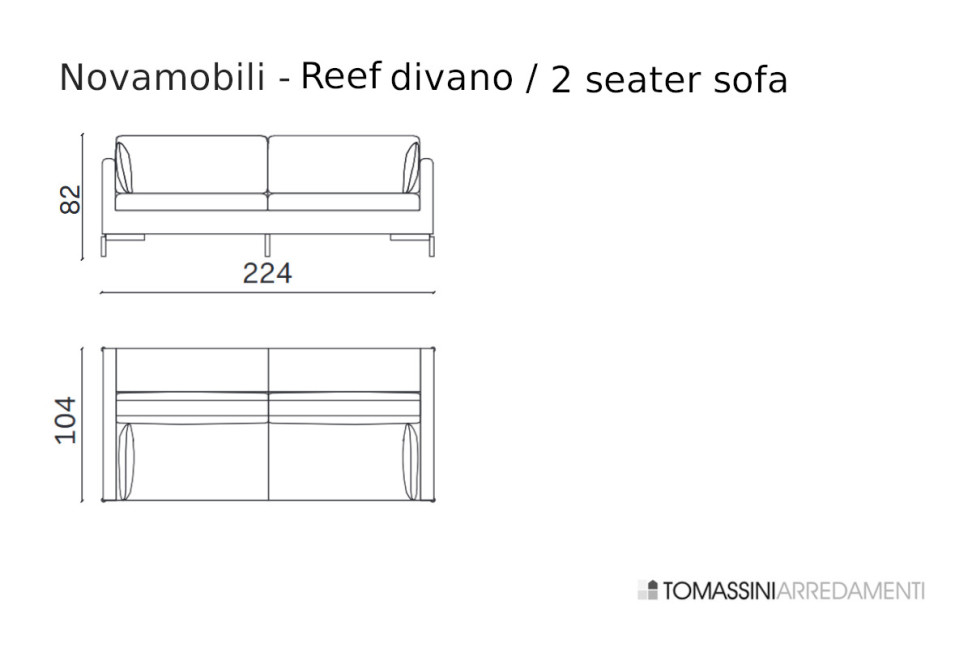 Le prix indiqué fait référence au canapé Reef 2 places large cm.224x90x75h, avec revêtement en tissu de catégorie intermédiaire.