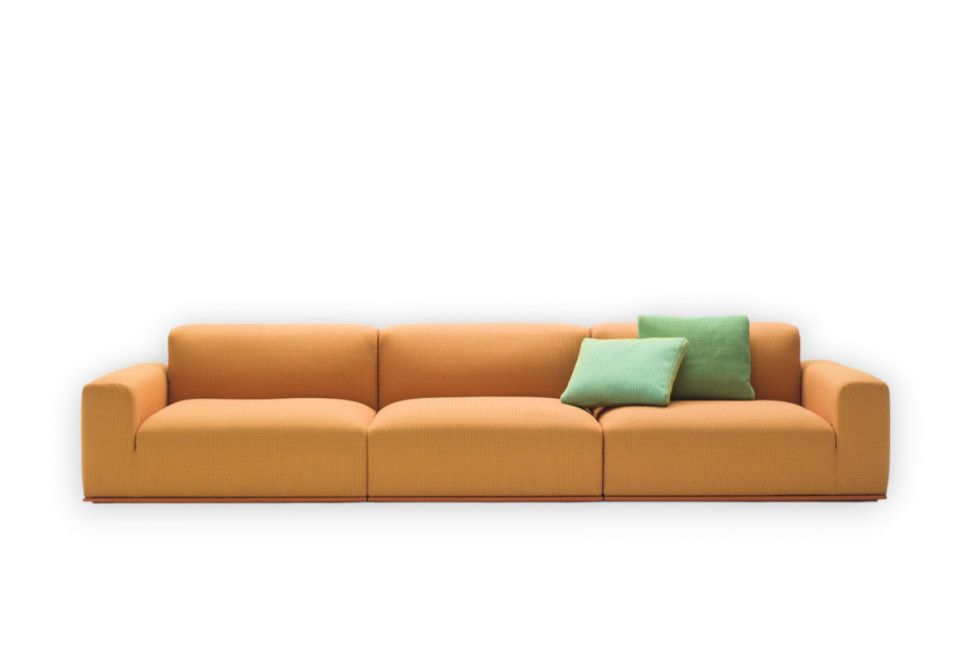 Le canapé Cover, conçu par Victor Carrasco pour Paola Lenti, est extrêmement polyvalent grâce à la structure en modules qui compose la série : éléments avec accoudoir, éléments centraux et angulaires, chaise longue et pouf. La structure est réalisée en bois multiplis courbé et est disponible en plusieurs couleurs et finitions. Le revêtement est déhoussable et disponible dans une large variété de couleurs et de tissus. Les coussins de l'assise et du dossier sont fabriqués en polyuréthane expansé indéformable à densité différenciée. La série comprend également une table d'appoint réalisée en bois avec les mêmes finitions que la structure du canapé.