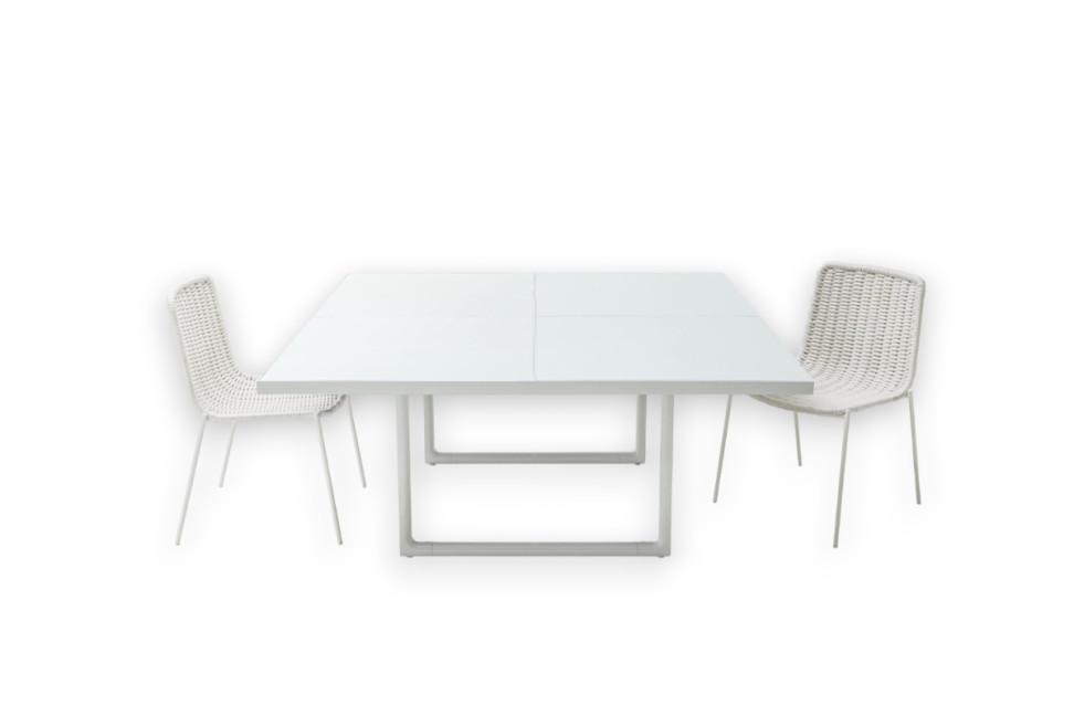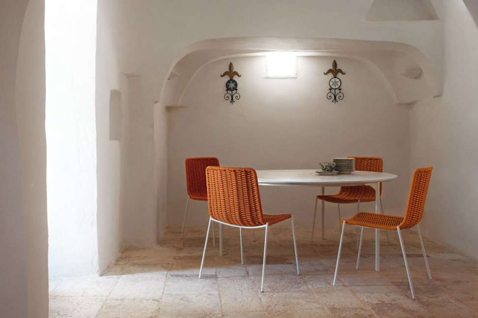 La chaise d'extérieur Kiti de Paola Lenti présente un design mince et essentiel qui s'adapte facilement à différentes situations.