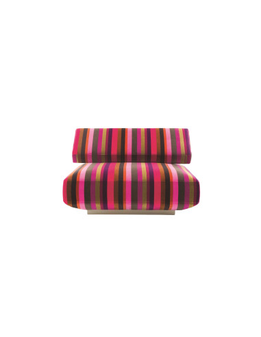 Le fauteuil Agio se présente pour la première fois avec un doux velours qui est rendu contemporain par un dessin multicolore audacieux. Le revêtement choisi pour l'occasion est le Lambusa qui ajoute une touche de vivacité et de personnalité au design du fauteuil, le rendant un élément de décoration élégant et accrocheur.