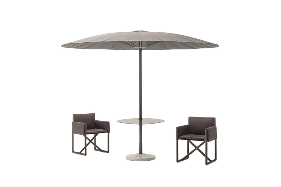 La ligne de parasols Bistrò de Paola Lenti présente une surface de couverture considérable, garantie par les grandes parties supérieures, disponibles en version plate ou en dôme et inclinables à volonté. Bistrò peut être associé aux accessoires spécifiques de la collection extérieure de Paola Lenti, comme le système de tables et poufs Clique.