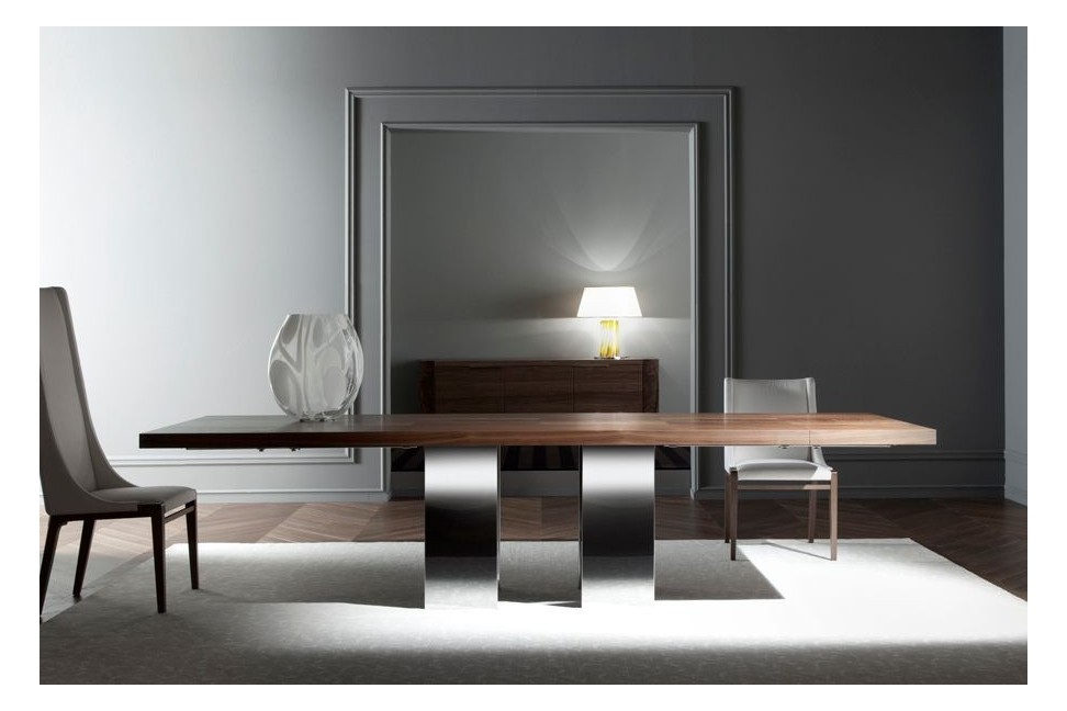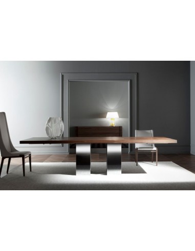 Soho est une table extensible créée par Pietro Costantini. Elle se présente avec un design contemporain. Elle est réalisée avec un plateau en bois dans différentes finitions et une base en acier inoxydable. Elle est également disponible dans la version fixe. L'utilisation combinée de matériaux différents confère un style unique et inimitable à la table. Soho se distingue par son aspect formel et élégant caractérisé par des lignes définies et régulières. Grâce à ses caractéristiques esthétiques élevées, la table Soho parvient facilement à attirer l'attention.Pietro Costantini