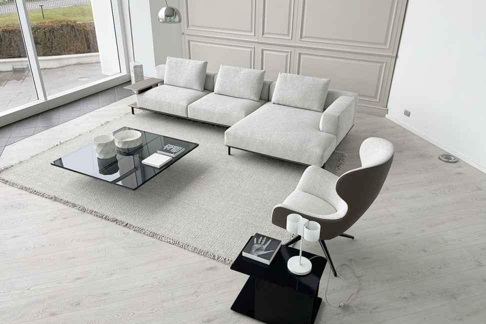 Conçu par Jean-Marie Massaud pour Poliform, le canapé Brera dessine un paysage domestique aux traits architecturaux où la simplicité se mêle à l'élégance.