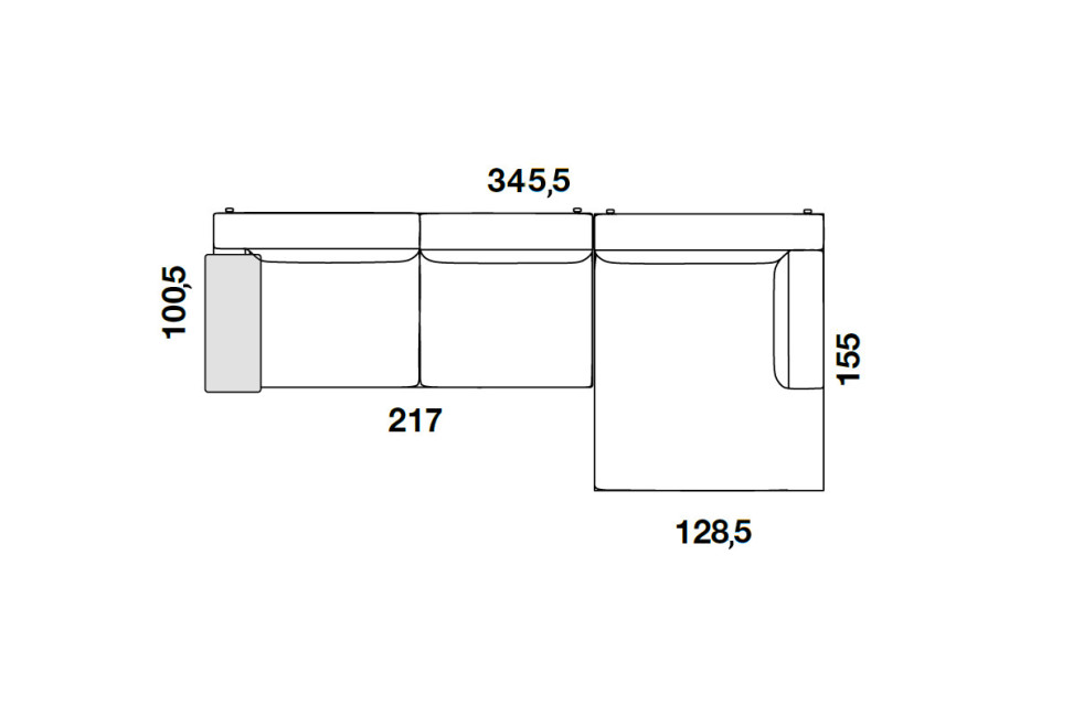 Dimensions : cm. 345,5x100,5/155x62h.