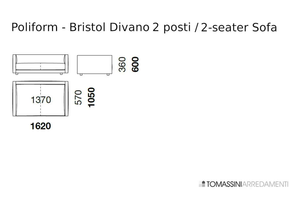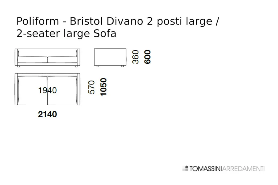 Canapé Bristol 2 places: cm. 214x105x60h.