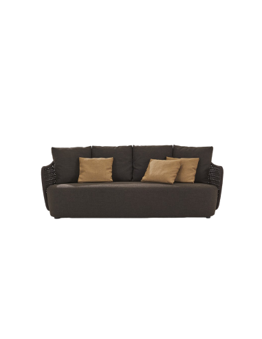 Le dossier aux formes courbes garantit une sensation enveloppante typique de la collection Mad mais devient aussi un élément décoratif : le motif géométrique créé par les cordes tissées laisse passer la lumière, conférant au canapé Mad Out une grande raffinement.