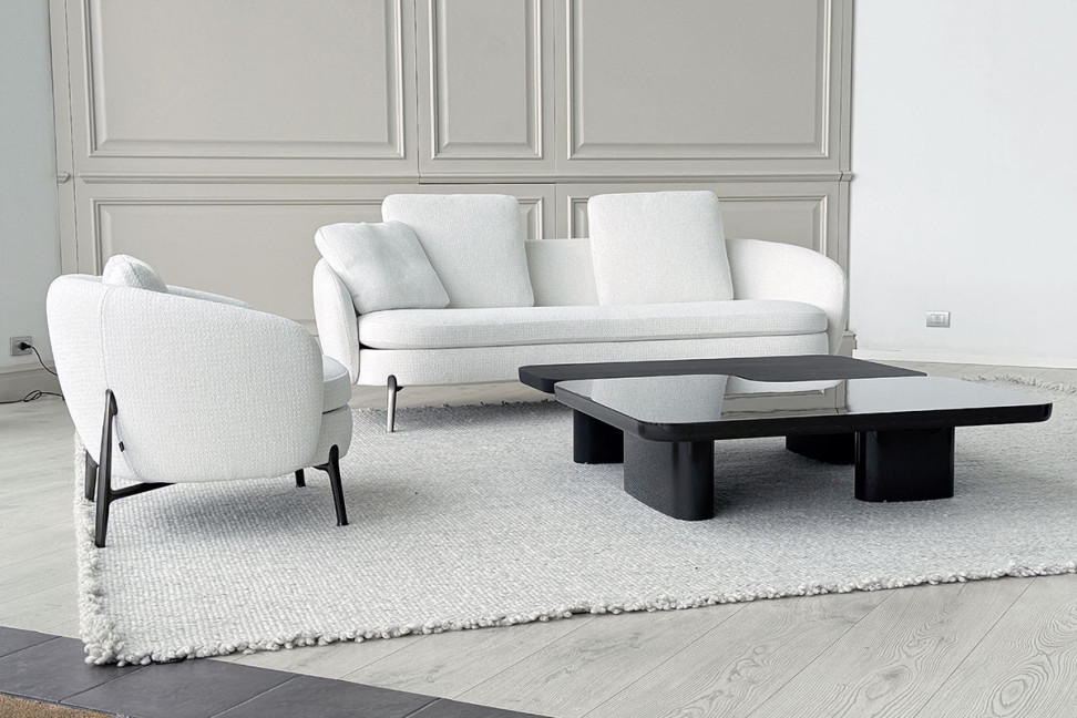 Le canapé Orbis de Poliform, dessiné par Emmanuel Gallina, est né d’une idée précise : définir dans l’espace domestique un coin conversation intime et accueillant, sans recourir à des séparations physiques. Ses lignes courbes et le profil enveloppant du dossier contribuent à créer un sentiment de continuité visuelle, rendant l’espace à la fois plus fluide et plus intime. Le canapé Orbis se distingue immédiatement par le design de ses pieds fins en métal, inspirés de l'art de la joaillerie.