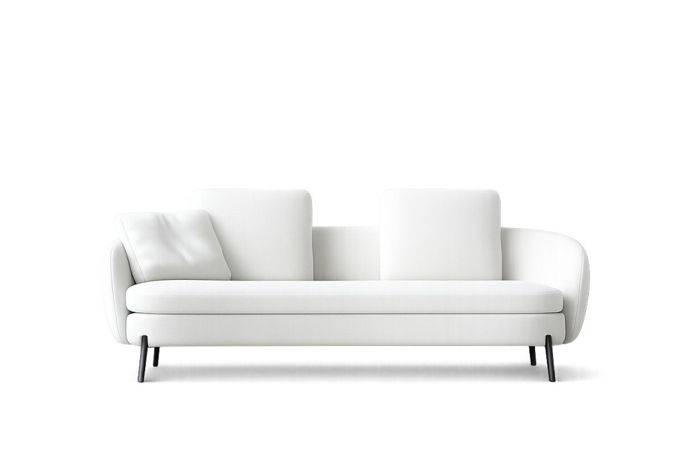Le canapé Orbis proposé en offre expo est disponible dans un tissu blanc raffiné, un choix qui met en valeur la pureté de ses formes et accentue son caractère lumineux. Les pieds en métal noir ajoutent un contraste marqué, complétant l'ensemble avec une touche graphique essentielle. Le canapé est accompagné de deux coussins de dossier et d'un coussin décoratif dans le même revêtement.