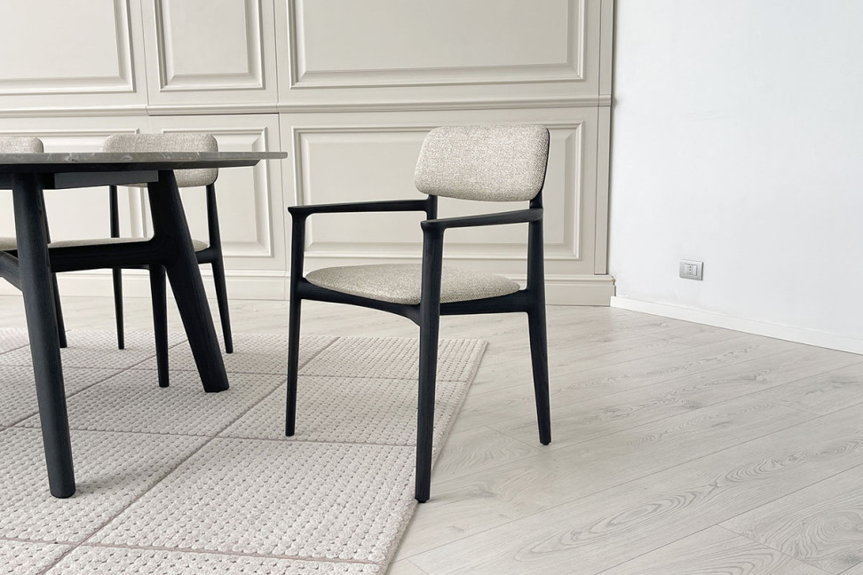 Le designer Emmanuel Gallina crée pour Poliform un siège léger et harmonieux: la chaise Curve avec accoudoirs.