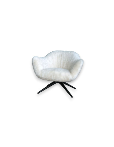 Le fauteuil Mad Chair en offre expo dans notre showroom est caractérisée par un revêtement en cachemire blanc, avec une structure peinte en nickel marron mat.