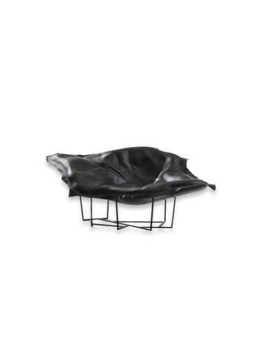 Caractéristiques Techniques: La structure est en polyuréthane souple moulé d'une seule pièce, injecté de mousse lors de la production. Le piètement est en métal peint en noir.