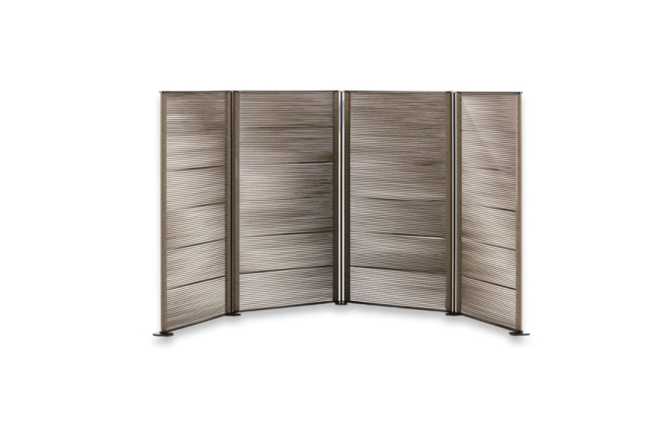 En effet, grâce aux différentes hauteurs disponibles, ce paravent pliant peut servir de protection pour le canapé, de séparateur ou de mur pour créer un coin intime et réservé. Le paravent Hima présente une structure en métal peint en nickel brun mat et une corde tressée couleur cendre. Un complément de mobilier au charme ancien mais toujours contemporain et élégant.